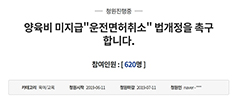"양육비 지급않는 무책임한 부모 운전면허 취소를" “양육비 미지급 ‘운전면허 취소’ 법개정을 촉구합니다.” 청와대 국민청원 게시판에 이 같은 제목의 글이... | 종합