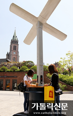 "명동대성당에서 태양광 충전… 신기해요” 서울 주교좌명동대성당을 찾은 외국인 관광객들이 가톨릭회관 앞 광장에 설치된 태양광 스마트폰 충전기... | 종합