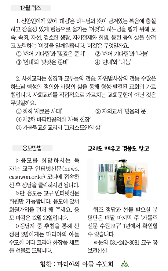 함께 걷자 믿음의 길 ‘가톨릭신문 수원교구’가 「믿음의 길」을 교구민과 함께 공부하며 전례적 삶 속에서 신앙생활의 풍요로... 수원교구 | 함께 걷자 믿음의 길