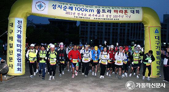 가톨릭신문사(사장 이창영 신부)는 대구대교구 설정 100주년을 기념해 4월 4~5일 1박2일간 교구 내 성지 일대에서 ‘제2회 성지순례 100km 울트라마라톤대회’를 열었다.