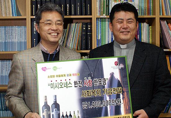 (주)태영인터내셔널(사장 김성철)도 같은 날 오전 서울 명동 가톨릭회관을 방문, 서울가톨릭사회복지회에 ‘미시오네스 한잔 사랑 한 모금’ 행사 수익금 140만원을 전달했다. 태영인터내셔널은 2008년 5월부터 전국 이마트 매장에서 판매된 칠레산 미시오네스와인 판매금액 3%를 기부하는 ‘미시오네스 한잔 사랑 한 모금’ 행사를 서울가톨릭사회복지회와 함께 실시해오고 있다. 태영인터내셔널은 와인 판매금액의 일정 부분을 모아 성 바오로출판사를 통해 군부대와 공소에 책을 보내는 데 기부하고 있다.