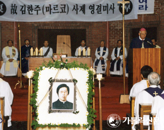 박정일 주교는 장례미사 강론에서 『고 김한주 신부님은 20년 가까이 고귀한 사제직을 훌륭하게 수행해 오신 분』이라며 『우리 곁에서 봉사하고 가신 김신부님께 우리가 드릴 수 있는 사랑의 표현은 오로지 기도뿐』이라고 강조했다.