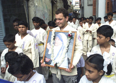 데레사 수녀는 1910년 알바니아에서 태어나 1928년 로레토 수도회에 입회했으며 1929년 인도에 와서 1997년 87세를 일기로 타계할 때까지 캘커타에서 가난한 사람들을 위해 살아왔다.