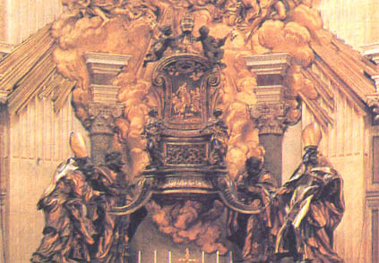 교부들의 역할과 중요성을 웅변하는 예술작품을 소개하겠다. 로마의 베드로 대성당 맨 앞에 벨리니(1598~1680) 작품의 「Gloria」(글로리아: 영광)가 있다. 건축가이자 조각가였던 벨리니는 미켈란젤로와 함께 베드로 대성당을 짓는 데 지대한 공헌을 한 예술가다. 「글로리아」의 상단 부에는 반 투명대리석 창문에 비둘기의 형상을 한 성령이 있고, 그 밑에 뭉개 구름과 작은 천사들에 둘러 쌓여 있는 의자가 있으며, 그 밑에는 5m 크기의 청동으로 된 네 분의 인물이 서있다. 한 가운데 있는 의자는 교황의 권위 있는 가르침을 나타내는 교좌(敎座)이다. 성령께서 그 교좌를 지켜주고 보호한다. 하단 부에 있는 네 분의 주교들 중에 앞쪽에 있는 두 분은 서방교회의 성 암브로시우스 주교와 성 아우구스티누스 주교이며, 그 뒤에 있는 두 분은 동방교회의 성 아타나시우스 주교와 성 요한 크리소스토무스(금구) 주교이다. 이들은 모두 손을 들고 있지만, 그 교좌에 직접 손을 대지는 않는다. 이는 그들은 교회의 가장 위대하고 대표적인 교부들이지만, 주님으로부터 직접 권위를 받은 사도 베드로의 후계자인 교황의 가르침에 조언을 할 뿐이지 직접 간섭하지 않는다는 뜻을 담고 있다.