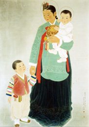 신유박해 200주년 기념 특별전을 위해 잠시 들어온 세 점의 성화는 1949년작으로 성모성년 기념 로마 국제 성미술 전람회에 출품했던 작품들이다.