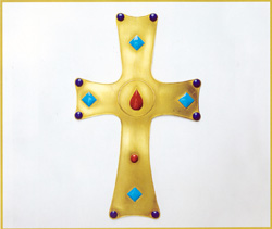 ▲ '십자가' 34×21㎝ 황동 터키석 산호 2000