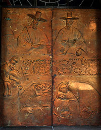 하지만 작업을 끝낼 당시 이 작품은 성당 중앙문에 설치될 수 없었다. 동판 부조작품이 무거워 오래된 성당 문이 견디기 어렵다는 지적 때문이었다. 이후 창고에 보관돼 있던 작품은 명동성당 보수작업이 끝나면서 다시 설치된 것.