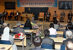 ○… 이날 시상식장에는 서울대교구 조규만 주교와 대구대교구 조환길 주교, 대구평화방송 사장 최재영 신부, 이종휘 은행장과 이순우 수석부행장을 비롯한 우리은행 임원진, 한국천주교평신도사도직협의회 한홍순 회장, 문화체육관광부 진재수 종무2담당관 등 교회 안팎의 내빈들이 대거 참석, 높아진 한국가톨릭문학상의 위상을 반영했다. 또 각계로부터의 많은 축하 화환과 축전이 답지해 수상자들을 축하하고, 한국가톨릭문학상의 발전을 한마음으로 기원했다.