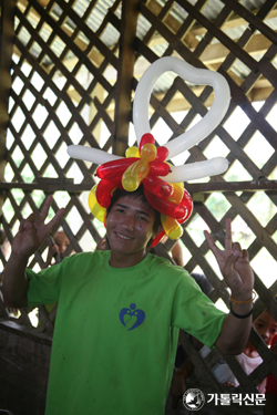 마지막 날 했던 ‘매직 풍선’은 동네 꼬마 녀석들까지 문 틈사이로 얼굴을 내밀고 아우성이다. 다 나눠주고 싶지만 아무리 빨리 만들어도 감당해 낼 수가 없다. 이 간단한 놀잇감 하나가 무엇이기에…. 키 크고 힘센 아이들만 덥석덥석 집어가는 것이 아쉬워 키 작은 아이에게 슬쩍 하나 챙겨준다. 아이는 내게 고맙다며 씽긋 웃어줬다.