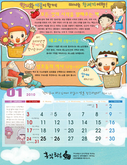 아울러 매월 월력 윗부분에는 그 달의 중심성구가 적혀있어 주일학교 수업시간이나 엄마와 아이가 함께 묵상해 볼 수 있다.