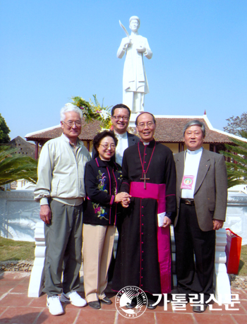 ▲ 지난해 11월 정신철 주교의 부모, 아버지 신부인 최창화 몬시뇰(맨 오른쪽)과 정 주교와 프랑스에서 함께 유학하며 친교를 나눴던 베트남 전 하노이대교구장 조셉 응고 쾅 키엣 대주교가 함께 기념촬영한 모습.