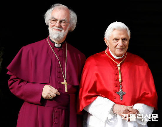 ▲ 교황이 17일 런던의 램버스궁에서 성공회 수장 로완 윌리엄스 캔터베리 대주교와 환담을 가진 뒤 기념촬영을 하고 있다.
