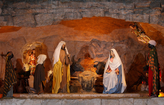 2층 구조의 구유는 교황 요한 바오로 2세에 의해 광장에 설치되기 시작한 것으로, 교황은 성탄 전야에 구유를 축복하고 구유는 내년 1월말까지 설치해 둔다. 이에 맞춰 교황청이 후원하는 100개 구유 전시회가 열린다. 올해 전시회는 산타마리아델포폴로대성당에서 열린다.