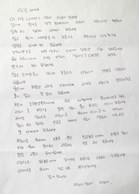 ▲ 하늘이 엄마 최미희씨가 감사의 뜻을 담아 보내온 편지.