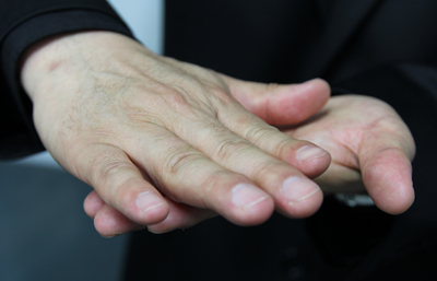 ‘평화’를 이야기할 때는 검지를 관자놀이에 댄 후 오른쪽 손바닥으로 왼쪽 손바닥을 쓸어내립니다.