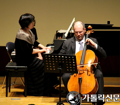 이날 무대에 오른 이는 다름 아닌 하비에르 예수회 학교(이하 학교) 건립 책임을 맡은 캄보디아 예수회 미션 한국관구장 대리 오인돈 신부의 여동생인 피아니스트 오지원(데레사·46)씨와 그의 남편 첼리스트 마크 코소워(Mark Kosower·38)씨 부부.