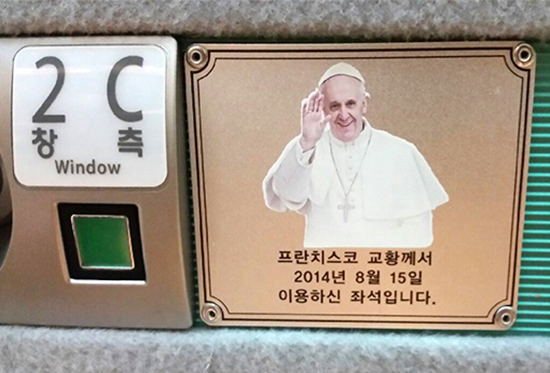 코레일은 지난해 8월 15일 교황이 서울역에서 대전역까지 이동하며 이용했던 KTX좌석을 ‘사랑과 나눔의 좌석’으로 운영해, 교황이 평소 보여준 사랑과 나눔의 정신에 따라 수익금을 어려운 이웃이 희망을 갖는 데 써달라고 요청했다.