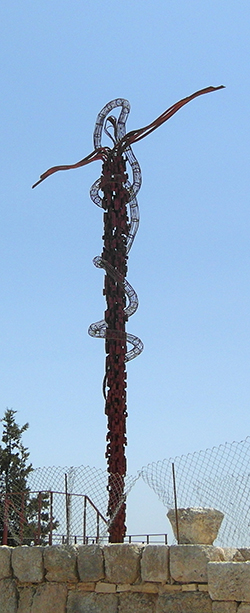 ▲ 요르단 느보 산 정상, 십자가 위의 구리뱀 형상.