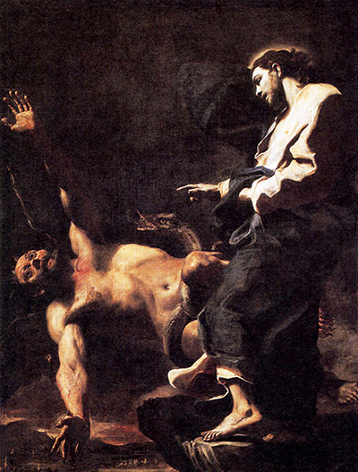 ▲ 「성경의 인물들」 삽화. ‘예수님께서 사탄을 쓰러뜨리시다’ 마티아 프레트 작.