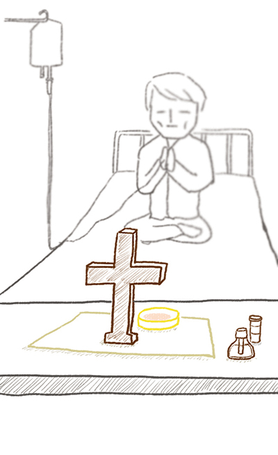 주땡 : 병자성사란 죽음에 임박했거나 위험한 상황에 있는 병자 혹은 노령의 신자에게 고통을 덜어주고 주님의 은총이 베풀어지도록 하는 성사예요. 몸의 건강뿐 아니라 영혼의 건강도 회복될 수 있도록 돕는 거죠.
