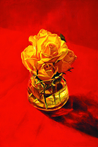 묵주기도를 한 단씩 엮어 성모에게 봉헌하는 마음으로 그려진 장미꽃들은 생화를 바라보고 있는 것처럼 느껴질 만큼 세밀하고 생명력 넘치게 묘사됐다. 아름답게 모인 장미송이들이 ‘순결한 사랑’이라는 한 다발의 주제로 성모에게 봉헌되는 것이다. 8월 26일~9월 1일 갤러리1898 제2전시실.