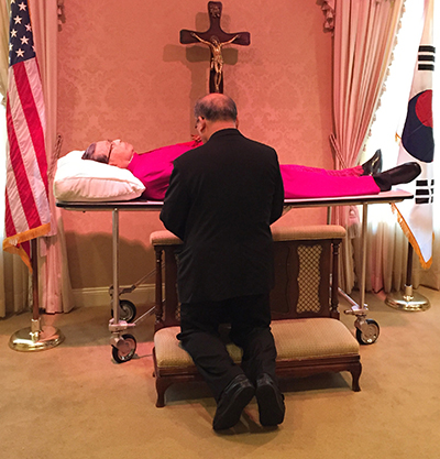 한편 서울대교구장 염수정 추기경은 박 몬시뇰의 선종소식을 접하고 21일 메이플우드 한인성당에 마련된 빈소를 방문해 고인의 영원한 안식을 위해 기도했다.