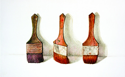 52세의 나이에 미국 보스톤 미술관대학에 진학해 미술을 전공한 심정실 작가는 당시 배웠던 이콘의 에그템페라 기법(천연안료에 달걀노른자를 섞어 칠)을 살려 그동안 그림을 그려왔다. 거울과 빗 등 일상의 소소한 정물을 이콘처럼 세밀하게 그려가며 작가 자신을 찾아가는 작품은 구도자의 모습과 닮았다. 현재는 서울 샬트르성바오로수녀회에서 예비 수녀들을 대상으로 그림을 가르치고 있다.