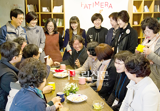 부산 가야성당(주임 임석수 신부)에 도착하자 잔잔히 들려오는 그레고리오 성가 사이로 향긋한 커피향이 코끝을 자극한다. 본당 ‘카페 파티메라(Fatimera)’로 들어섰다. 모여든 신자들이 임석수 주임신부, 이광우 부주임신부와 둘러앉아 이야기꽃을 피우고 있었다.