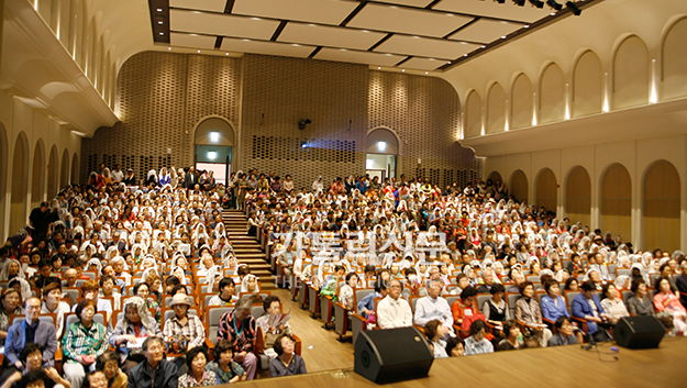 드망즈홀을 가득 메운 신자들.