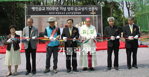 이날 선포식에는 교구장 주교와 총대리 한만옥 신부를 비롯한 교구 사제단, 이성호 양주시장 등 내빈과 신자 500여명이 참석했다. 행사는 순교성지 테이프 절단에 이어 성지 축복기도, 순교성지 선포, 미사 등의 순서로 진행됐다.