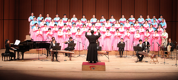 그랬는데 웬걸요, 제가 없는 사이에 오히려 이분들을 중심으로 점점 사람들이 늘어나, 한소리중창단에서 1996년 10월 30일에 ‘한소리합창단’으로 확대 창단됐고, 이듬해 10월 광주 문예회관 대극장에서 소년소녀 가장 돕기 자선음악회를 성대하게 개최하는 성과도 거두었습니다. 이 초창기에 광주대교구 조영대 신부님이 지도를 맡아 많은 도움을 주셨고, 초대 단장 겸 지휘자로 김달 엘리사벳 자매님이 전적으로 애를 많이 쓰셨습니다. 저는 이 놀라운 일을 보면서 “아! 국악성가는 정말 하느님이 원하시는 거구나!” 하는 것을 실감할 수 있었습니다.