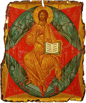 옥좌에 앉으신 구세주 그리스도의 형상은 8세기 이전에 나타나기 시작해, 12~13세기에 터키 카파도키아를 통해 러시아에 유입됐다. 이어 그리스에서 건너간 성화작가이자 수사인 테오판네스와 그의 러시아인 제자 안드레이 루블료프에 이르러 오늘날 볼 수 있는 것과 같은 형태로 정형화되게 된다.
