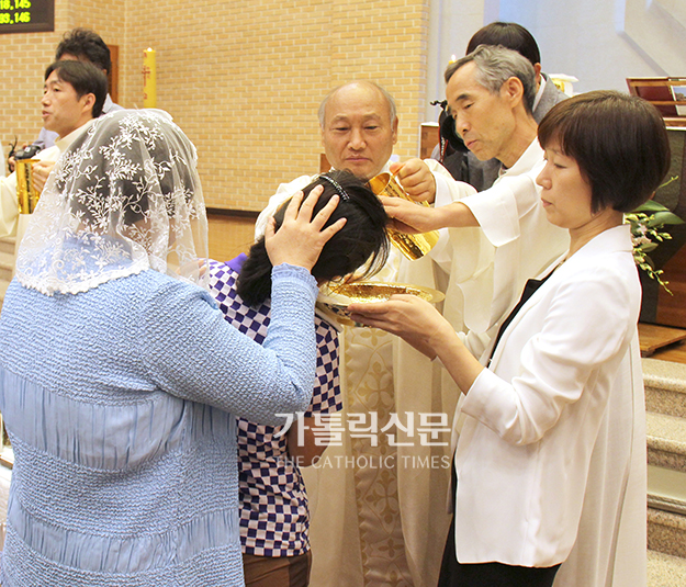 6월 18일 서울 반포4동성당에서 새터민 60명이 세례를 받고 있다.