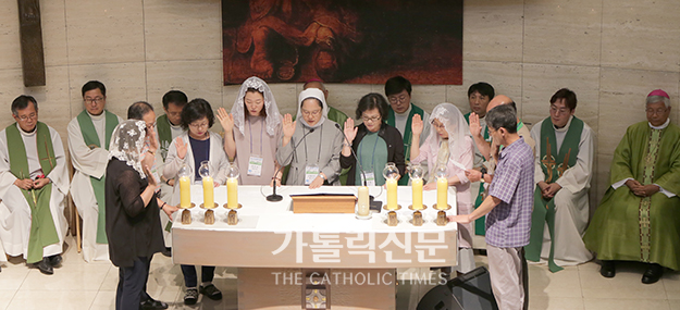 대전교구장 유흥식 주교 주례의 파견미사에서는 참가자 전원이 말씀으로 무장해 가난한 이웃을 돕는 ‘자비의 선교사’로 봉사할 것을 선서했다.