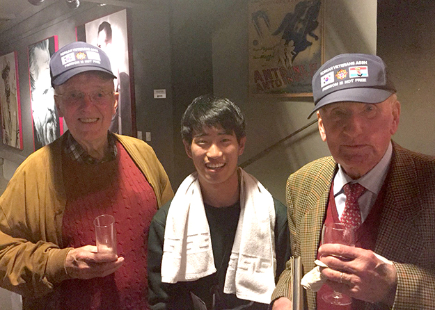 유럽 배낭여행 중 6·25 참전용사와 만나 감사인사를 전한 이학도씨(가운데). 이학도씨 제공