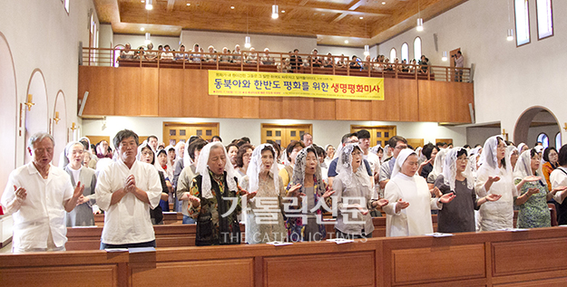 대구대교구 정의평화위원회(위원장 신종호 신부)와 안동교구 정의평화위원회(위원장 배인호 신부), 성 베네딕도회 왜관수도원 정의평화위원회(위원장 황동환 신부)는 18일 오전 10시30분 왜관수도원에서 ‘동북아와 한반도 평화를 위한 생명평화미사’를 봉헌했다. 왜관수도원장 박현동 아빠스 주례로 봉헌된 이날 미사에는 성주지역 신자들을 비롯한 의정부, 부산, 대전, 포항 등지서 온 700여 명이 참례했다. 성공회 사제들도 참가해 평화와 일치를 염원했다.