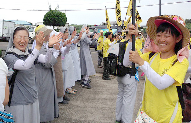 한국 진출 50주년을 맞아 정의평화창조보전 활동에 적극 나서는 차원에서 지난 8월 강정 생명평화대행진에 참석한 그리스도의 교육 수녀회 수녀들. 그리스도의 교육 수녀회 제공