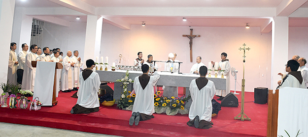 이날 미사는 꽃동네 가족들과 회원들, 교회 및 지역사회 관계자 등 5000여 명이 참례한 가운데, 청주교구장 장봉훈 주교와 주한 교황대사 오스발도 파딜랴 대주교, 수도회 사제단 등이 공동집전했다.