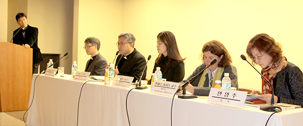 11월 12일 가톨릭대학교 성신교정에서는 가톨릭대학교 사목연구소 신학과사상학회 주최로 제25회 학술심포지엄이 열렸다. 종합토론 중 박준양 신부가 참석자들의 질문에 답하고 있다.