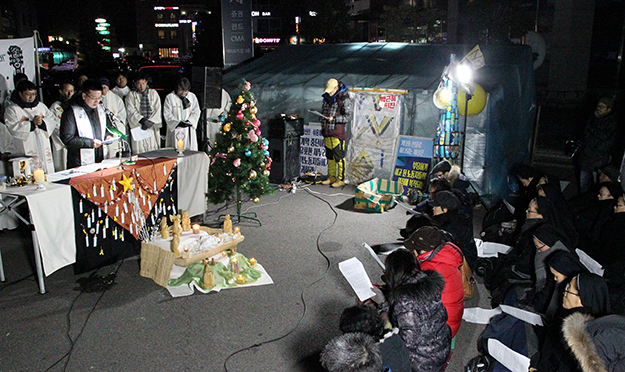 거리로 내몰린 노동자들에게도 아기 예수님 탄생의 기쁜 소식은 찾아왔다.