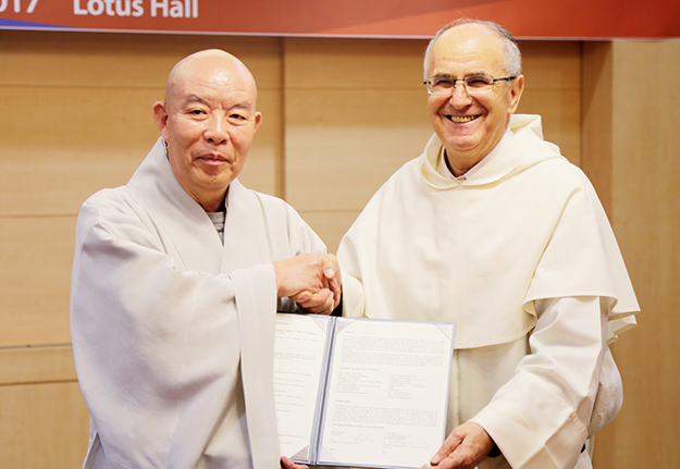 동국대 총장 보광 스님은 “이번 학술교류협정체결은 단순히 대학과 대학 간의 자매결연이 아닌, 불교와 가톨릭의 만남이자 양 종교의 학술적 대화의 장을 여는 계기가 될 것으로 기대한다”고 말했다.