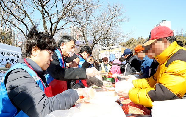 행사 뒤 주최 측은 점심을 마련해 참석한 1000여 명의 노숙인에게 나눠줬다.