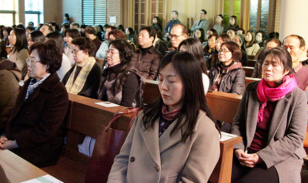 3월 1일 서울대교구 주교좌 명동대성당 파밀리아 채플에서 열린 ‘도시피정 따뜻한 마음 쉼 2’에서 묵상하고 있는 참가자들.