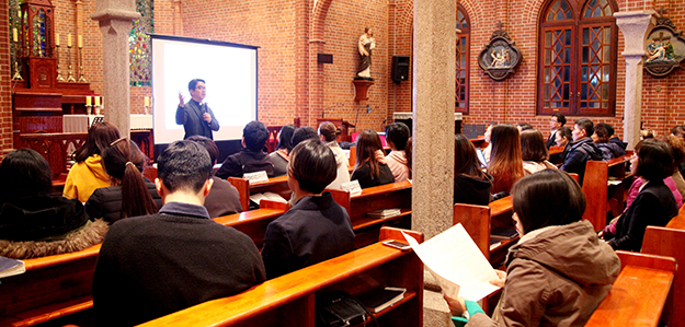 3월 19일 서울 중림동 약현성당에서 이영제 신부가 ‘유사종교에 대한 우리들의 자세’를 주제로 특강을 하고 있다.