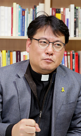 지난 1월, 갓 서품된 새 신부들과 서울 광화문광장에 다녀온 김 신부는 그곳에서 들은 한 세월호 유가족의 당부를 잊지 못한다. 예비신학생이었던 고(故) 박성호 군의 어머니 정혜숙씨는 새 신부들에게 “사제관에서 오는 사람만 맞이하지 말라”면서 “정말 절박한 사람은 찾아올 여유도 없기 때문이다”고 당부했다.