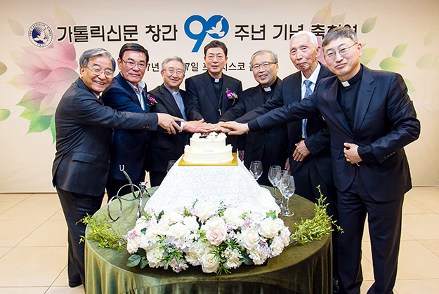 가톨릭신문 창간 90주년(4월 1일) 미사는 염수정 추기경(서울대교구장)과 김희중 대주교(주교회의 의장)를 비롯해 조환길 대주교(대구대교구장), 이용훈 주교(수원교구장) 등 한국 주교단과 전국 사제단 공동집전으로 거행됐다.