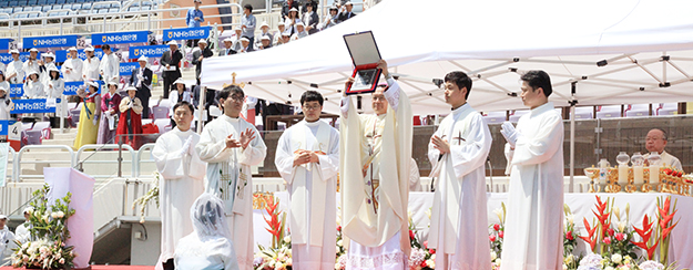 특히 ‘바다의 별’ 레지아 단원들은 이날 미사 중, 60주년을 앞두고 지난 1년간 바친 묵주기도 7637만8395단과, 소외된 이웃과 고통 받는 이웃을 위한 기도 39만1410회, 매일미사 참례와 성경읽기 706만3415회, 60주년 봉헌기도 353만3996회를 새긴 패를 봉헌했다.