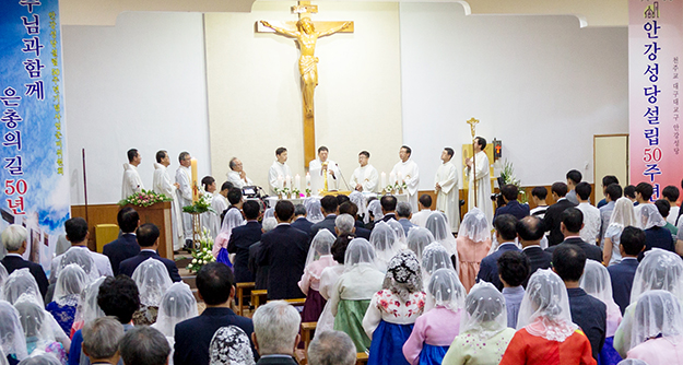 대구대교구 경주 안강본당이 설립 50주년을 맞아 5월 14일 교구장 조환길 대주교 주례로 기념미사를 봉헌하고 있다.