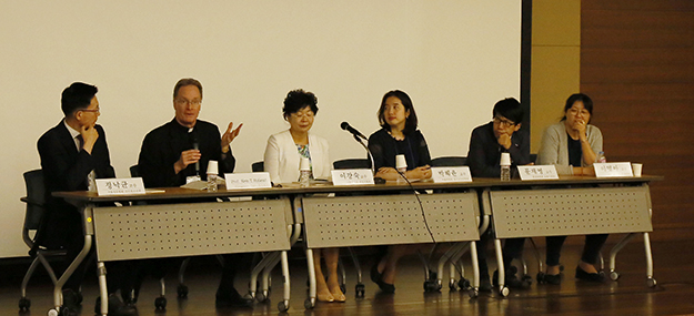 5월 20일 가톨릭대학교 서울성모병원 지하 대강당에서 열린 특별 심포지엄에서 케빈 피츠제럴드 신부(왼쪽에서 두번째)를 비롯한 패널들이 종합토론을 하고 있다.