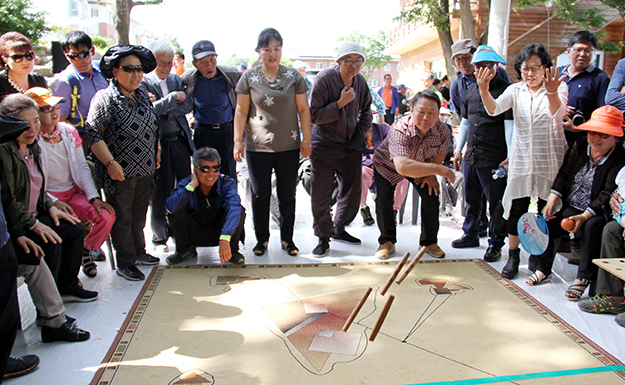 6월 3일 산청 성심원에서 열린 ‘전국 가톨릭 한센인 정착마을 한마음 잔치’ 참가자들이 윷놀이를 하며 즐거운 시간을 보내고 있다.